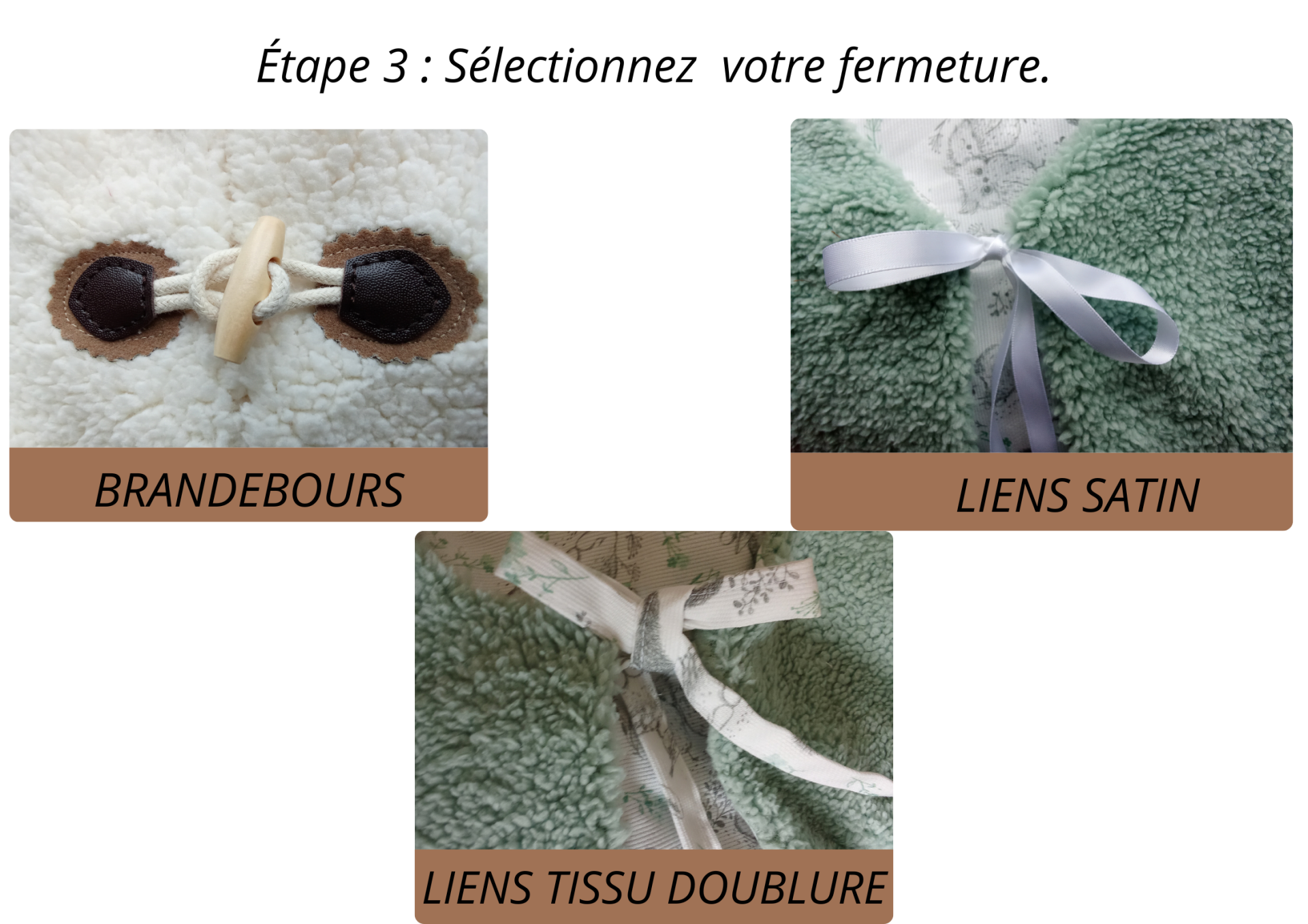 - Personnalisable au niveau des tissus doublure et FAUSSE FOURRURE (voir images)